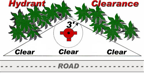 As a property owner it is typically your responsibility to maintain the proper clearance around a hydrant. Pictured below is a typical clearance specification, but you should check with you local department for its specific requirements. If your area uses a dry hydrant*** (pictured right), use a similar specification and be aggressive to ensure the clearance specification is in compliance.