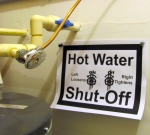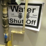 Tape the sign to a section of cardboard and using a string, hang each sign close to the shut-off valve.